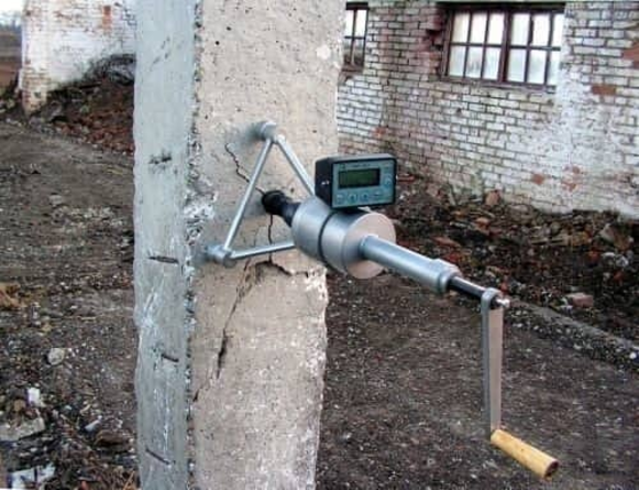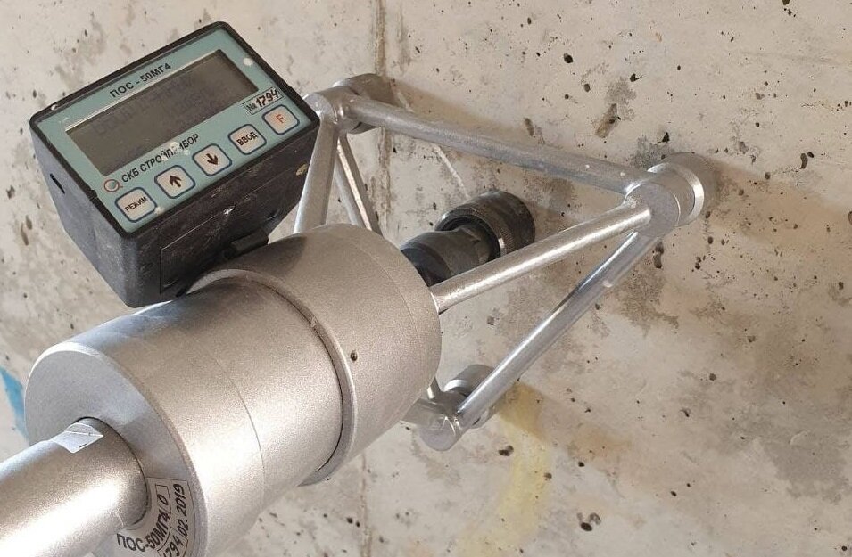 Склерометр (молоток Шмидта). Один из самых популярных приборов. Он «бьёт» по поверхности бетона, и по отскоку судят о прочности.
